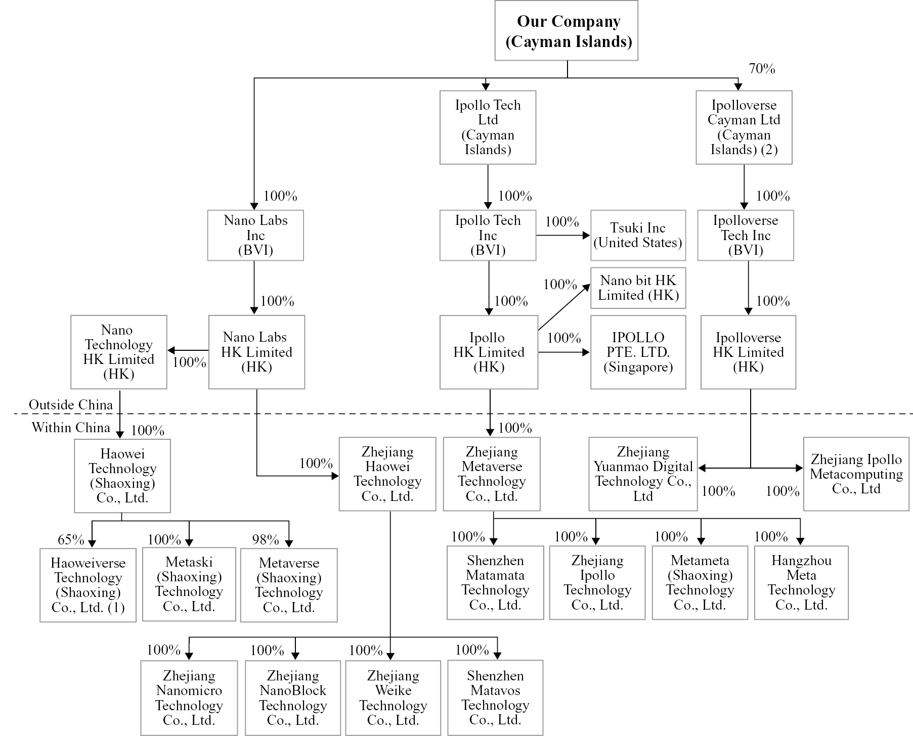 our wholly owned BVI subsidiaries, then to our Hong Kong subsidiaries, which will further distribute the funds to our PRC subsidiaries. If we intend to distribute dividends, PRC subsidiaries will transfer the dividends to our Hong Kong subsidiaries in accordance with the laws and regulations of the PRC, and then our Hong Kong subsidiaries will transfer the dividends all the way up to Nano Labs Ltd, and the dividends will be distributed from Nano Labs Ltd to all shareholders respectively in proportion to the shares they hold, regardless of whether the shareholders are U.S. investors or investors in other countries or regions. The cross-border transfer of funds within our corporate group under our direct holding structure must be legal and compliant with relevant laws and regulations of China. In utilizing the proceeds from the Private Placement, as an offshore holding company, we are permitted under PRC laws and regulations to provide funding to our PRC subsidiaries only through loans or capital contributions and to our affiliated entities only through loans, subject to applicable government reporting, registration and approvals. See “Item 14. Material Modifications to the Rights of Security Holders and Use of Proceeds — Use of Proceeds” and “Item 3. Key Information — D. Risk Factors — Risks Related to Conducting Business in China — PRC regulation of loans to and direct investment in PRC entities by offshore holding companies and governmental control of currency conversion may delay or prevent us from using the proceeds of the securities offering to make loans or additional capital contributions to our PRC subsidiaries” in the 2024 20-F. In 2022, 2023 and 2024, we transferred cash proceeds of US$24.3 million, US$17.5 million and US$13.1 million to our PRC subsidiaries for the settlement of intercompany transactions and as paid-in capital for our PRC subsidiaries, and none of our PRC subsidiaries has issued any dividends or distributions to respective holding companies or any investors as of the date of this prospectus. We do not have any present plan to pay any cash dividends on our ordinary shares. We have, from time to time, transferred cash between our PRC subsidiaries to fund their operations, and we do not anticipate any difficulties or limitations on our ability to transfer cash between such subsidiaries. As of the date of this prospectus, no cash generated from our PRC subsidiaries has been used to fund operations of any of our non-PRC subsidiaries. We may encounter difficulties in our ability to transfer cash between PRC subsidiaries and non-PRC subsidiaries largely due to various PRC laws and regulations imposed on foreign exchange. However, as long as we are compliant with the procedures for approvals from foreign exchange authorities and banks in China, the relevant laws and regulations in China do not impose limitations on the amount of funds that we can transfer out of China. We currently do not have any cash management policy that dictate the transfer of cash between our subsidiaries. See “Item 4. Information of the Company — B. Business Overview — Regulation — PRC Laws and Regulations relating to Foreign Exchange” in the 2024 20-F for details of such procedures.